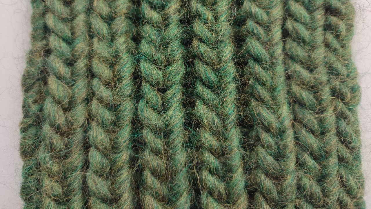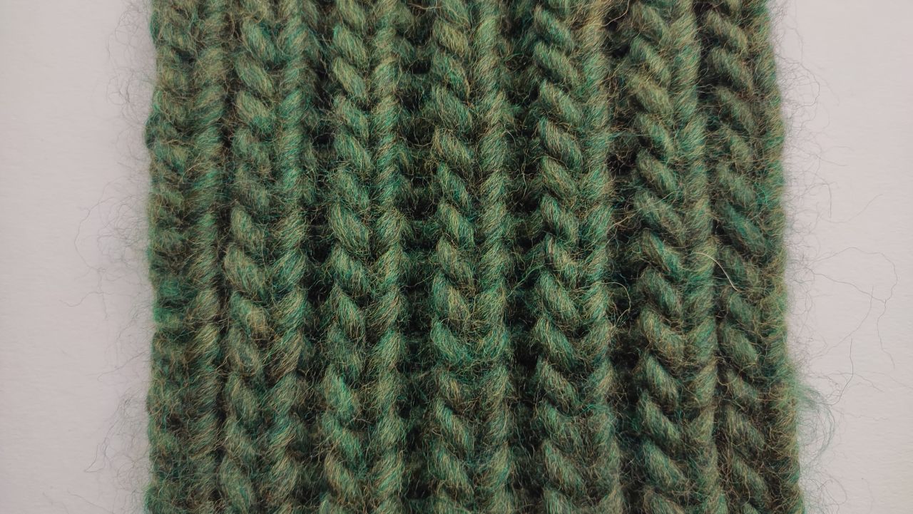 Poniżej możesz zobaczyć jak wygląda z obu stron robótka wykonana ściegiem Fisherman’s Rib: